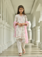 Gul Pink Girls Kurti with Pants Set in Cotton with Net Dupatta