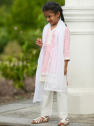 Ira Pink Rose Girls Kurti with Pants Set in Cotton