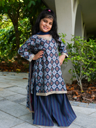 Tara Blue Girls Choga Style Kurta & Palazzo Set in Muslin Cotton