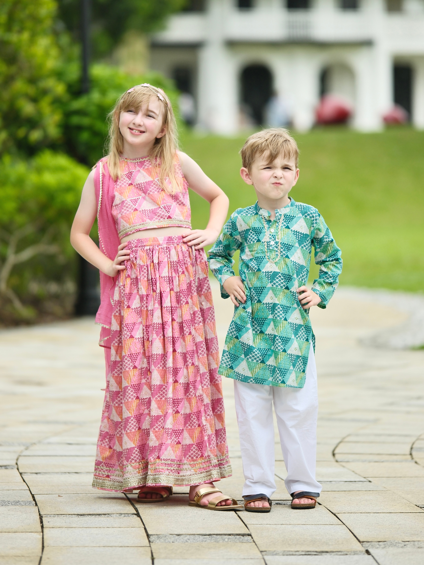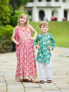 Crafted from soft, breathable pure cotton, the kurta ensures all-day comfort while the pajama provides a relaxed fit that keeps him at ease. The classic blue shade makes it versatile for pairing with family outfits, while the understated detailing keeps the look refined and graceful.