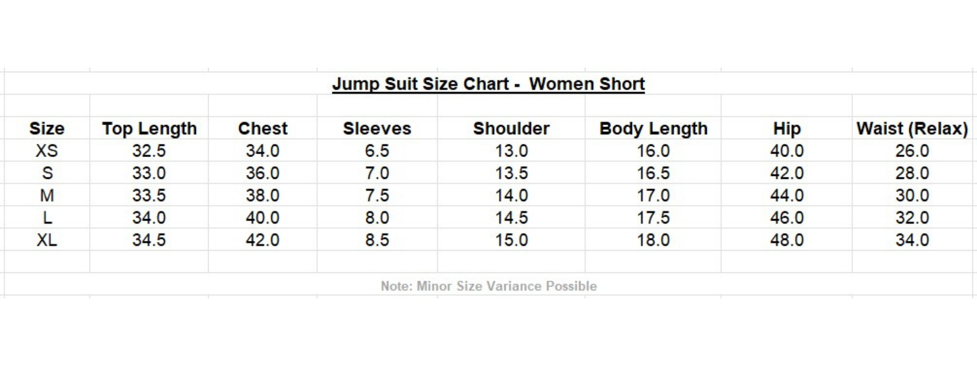 All the sizes are in Inches
