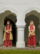 Amara Red Floral Girls Halter Lehenga with Chanderi Dupatta Set in Ice Cool Satin Cotton